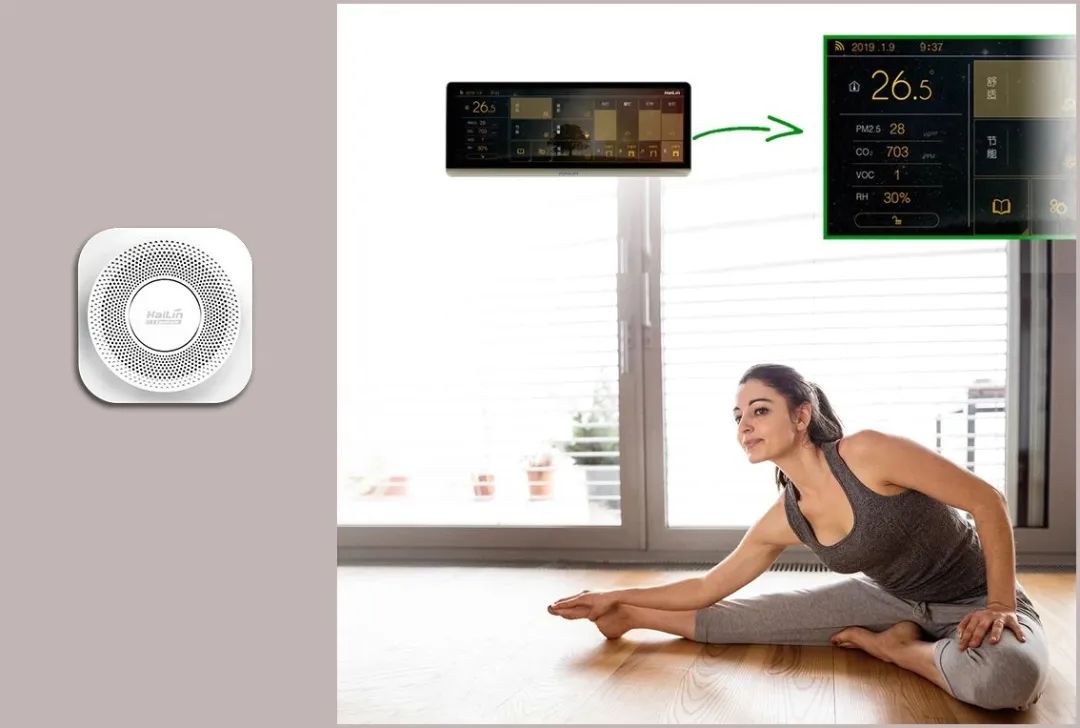 Ate Pro與Ace智能控制面板連接,Ate Pro實時監測環境參數,Ace智能控制面板根據數據精準調控新風凈化設備運行,保證室內環境健康。同時系統將采集到的環境數據及設備運行狀態實時顯示在智能面板上,使用戶對當前室內環境健康一目了然。