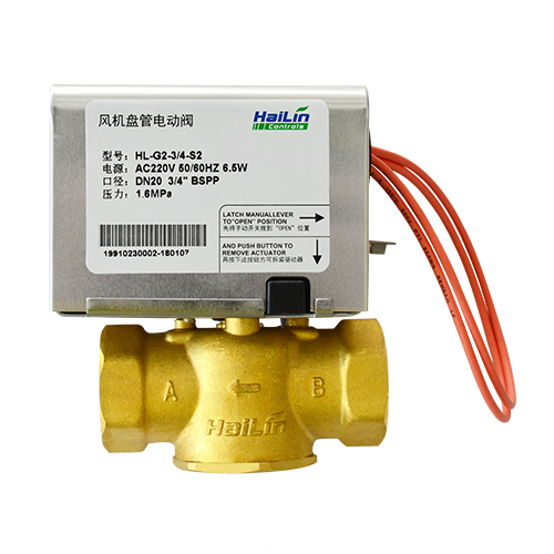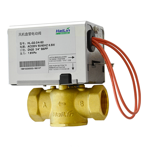電動閥HL-G(二通/三通)用于空調末端水路控制。其由溫控器控制電動閥電機,并通過減速機構和復位彈簧使閥門開或關,從而實現管道里的介質流通或斷開,再通過風機盤管送風,實現室內溫度的自動控制。